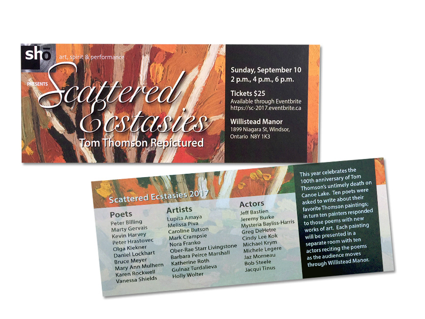 Designed and produced artwork for Scattered Ecstasies Production promo card, Facebook post and Eventbrite art.